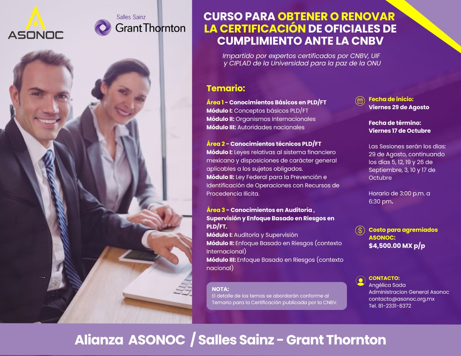 Asonoc en alianza con Salles, Sainz – Grant Thornton pone a su disposición el curso preparatorio para el examen PLD/FT de la CNBV en donde podrás aprender y repasar todos los conocimientos que requieres para acreditar la certificación🧑🏫.